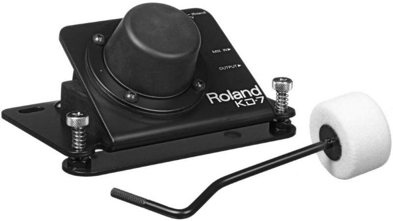 Érzékeny lábdob jeladó bármilyen ütõshangszerhez Egy dinamika érzékeny lábdob pedál jeladó, amely használható bármely szabványos lábdob pedállal. Tartalmaz egy MIX kimenetet mely segítségével egy másik KD-7-es jeladót lehet csatlakoztatni duplázó pedál használathoz (a pedál nem tartozéka a KD-7 lábdob jeladónak). A KD-7 ideálisan használható a HPD-15 és RMP-1-el.
