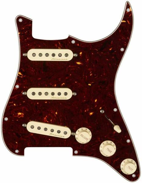 Vintage Noiseless SSS, 11 screw holes, tortoise shell Customize your tone with the Pre-Wired Stratocaster pickguards. Made with premium components in the same factory as our iconic guitars, this drop-in pickguard is easy to install. Simply remove your old guard, solder the output jack and ground wires, screw in the new guard and you’;re ready to rock with pure Fender sound. Features Vintage Nois