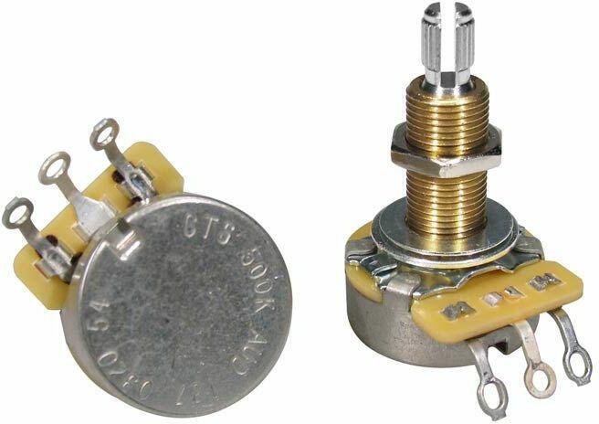 potentiometer 20 pcs bulk pack, long 500K audio - long bushing . 750&;quot; - 3/8&;quot; diameter - for LP-model Value: Typically 250K pots are used for single coil pickups and 500K pots for humbucker pickups. The bigger the resistance value, the brighter the sound will be/ less highs will bleed off. 1MEG can be used to make humbuckers sound brighter. Taper: The taper of a pot refers to th