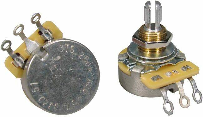 potentiometer 20 pcs bulk pack, standard 250K audio - standard length bushing . 375&;quot; - 3/8&;quot; diameter Value: Typically 250K pots are used for single coil pickups and 500K pots for humbucker pickups. The bigger the resistance value, the brighter the sound will be/ less highs will bleed off. 1MEG can be used to make humbuckers sound brighter. Taper: The taper of a pot refers to th