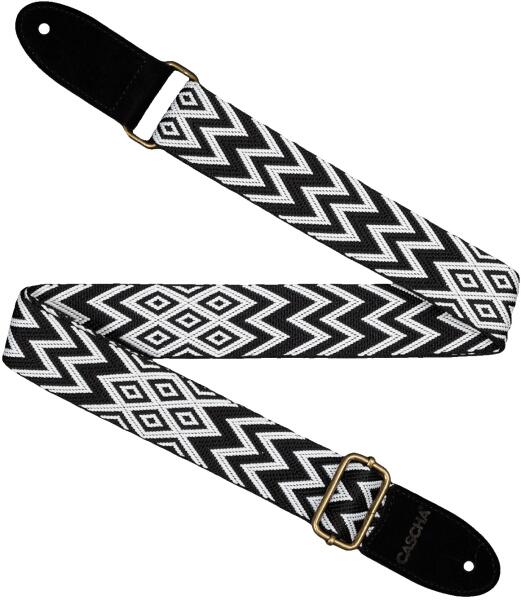 Ki számára alkalmas: Ukulele, Anyag: Textil, Szélesség: 50 mm, Minimális hossz: 76 cm, Maximális hossz: 139 cm, Szín: Fekete/Fehér, Gyártás helye: Kína,