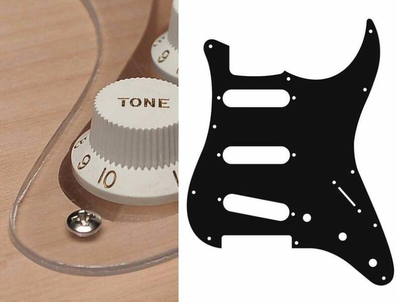 pickguard, Stallion, standard, SSS, 3 pot holes, 3-5 switch, 1 ply. transparent