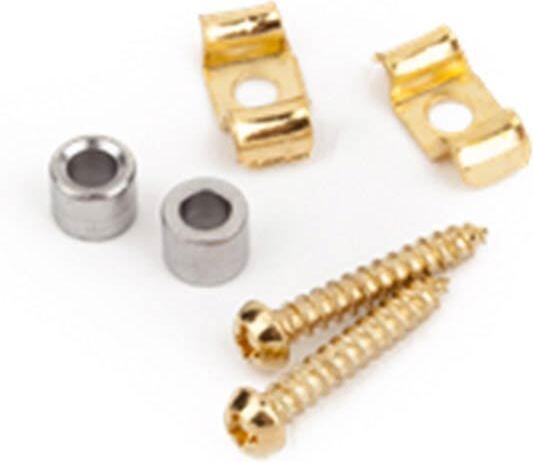 string guide for Vintage Stratocaster, gold Set of two string guides (string trees) for use on American Vintage, Road Worn®;, Pawn Shop and Classic series Stratocaster models. Optimizes string tension and helps minimize tuning problems. Mounting hardware included.
