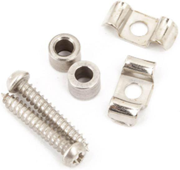 string guide for Vintage Stratocaster, chrome Set of two string guides (string trees) for use on American Vintage, Road Worn®;, Pawn Shop and Classic series Stratocaster models. Optimizes string tension and helps minimize tuning problems. Mounting hardware included.
