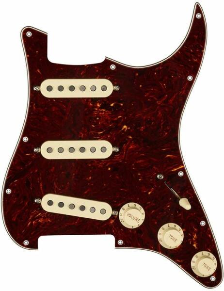 Tex-Mex SSS, 11 screw holes, tortoise shell Customize your tone with the Pre-Wired Stratocaster pickguards. Made with premium components in the same factory as our iconic guitars, this drop-in pickguard is easy to install. Simply remove your old guard, solder the output jack and ground wires, screw in the new guard and you’;re ready to rock with pure Fender sound. Features Tex-Mex Pickups Polyso