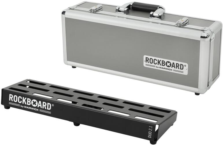 RockBoard DUO 2.1, Pedalboard Flight Case-szel A RockBoard RBO B 2.1 DUO C pedalboard körülbelül 4-7 pedál számára nyújt helyet, azok méretétõl függõen, és tartalmaz egy hozzá illõ flight case-t a biztonságos szállításhoz. Csavarodásmentes alumínium profilváz, tartós PVC felület, csúszásmentes lábak és levehetõ, párnázott fedél gondoskodik a pedálok biztonságos é