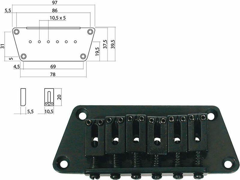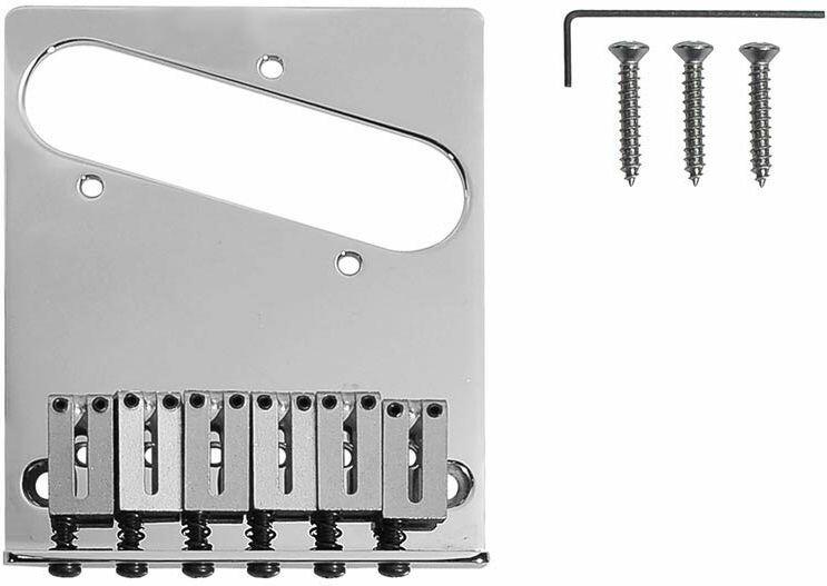 bridge assembly American Series ('86-'07) Tele, chrome Modern six-saddle bridge assembly for use on American, American Deluxe and American Standard series Telecaster guitars manufactured from 1986-2007. Includes string-through-body plate, six American series bridge saddles with offset intonation screws, mounting hardware and adjustment wrenches. Features Modern six-saddle bridge assembly String-th