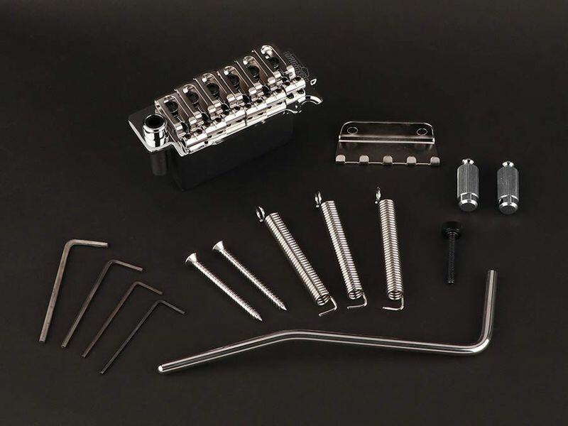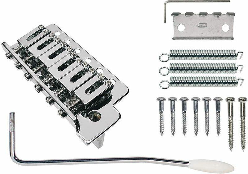 tremolo Wilkinson type, pitch 10,8 mm, 2 pivot points, chrome A unique, high quality tremolo with saddles that lock to a hardened steel baseplate for better tuning stability, string energy transfer and sustain. Each saddle is height-adjustable. Threaded studs and bushings, springs, spring claw, allen wrenches and adjustable-tension arm are included. &;lt;br&;gt;&;lt;br&;gt;This tre