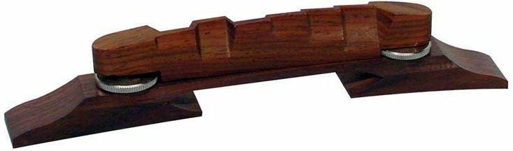 bridge for guitar, rosewood, height adjustable, compensated saddles, thin bottom Dimensions: - Foot surface: 136 mm (l) x 15 mm (w) - Saddle/string spacing: 52mm (approx. ) - Maximum adjustable action/height: 31 mm (E) - 31 mm (e) - Minimum adjustable action/height: 27 mm (E) - 27 mm (e) - Post distance: 73 mm