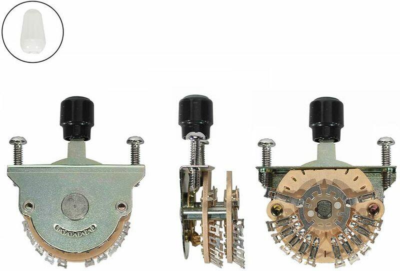 lever switch, 5-way Super Switch, for custom wiring, bolts and cap included Features Five-position blade pickup selector switch White tip for a Stratocaster Black &;quot;barrel&;quot; tip for a Telecaster Mounting hardware included