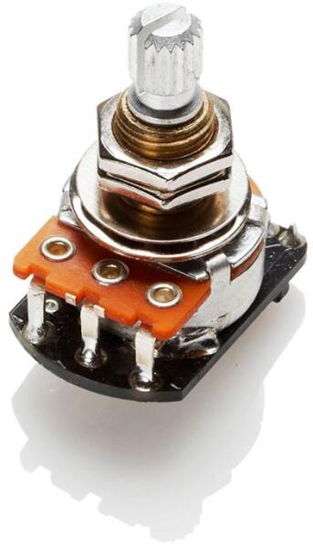 25k bevágott, rövid tengelyű hangerő potenciométer, aktív hangszedőkhöz.