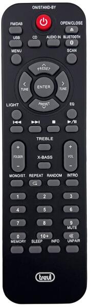 Helyettesítő távirányító TREVI HCV 10D35 - 100%-os 1:1 arányú helyettesítője az eredeti távirányítónak. A távirányító ebben a regisztrált márkájú távirányító változatban kapható. General DVD/AUDIO (balra látható). Garantáljuk, hogy a távirányító az eredeti távirányító minden funkcióját ellátja. Ez nem egy univerzális távirányító, hanem olyan, amely k