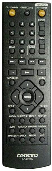 Helyettesítő távirányító ONKYO RC-725DV (RC725DV) - 100%-os 1:1 arányú helyettesítője az eredeti távirányítónak. A távirányító a ONKYO:DV-SP406, DV-SP406S, DVSP406, DVSP406S. (Előfordulhat, hogy nem minden kompatibilis modell szerepel a listában. Ha nem biztos benne, csak adja meg a készülékmodelljét (online chat-en vagy e-mailben), és mi azonnal ellenőrizzük, if kompati