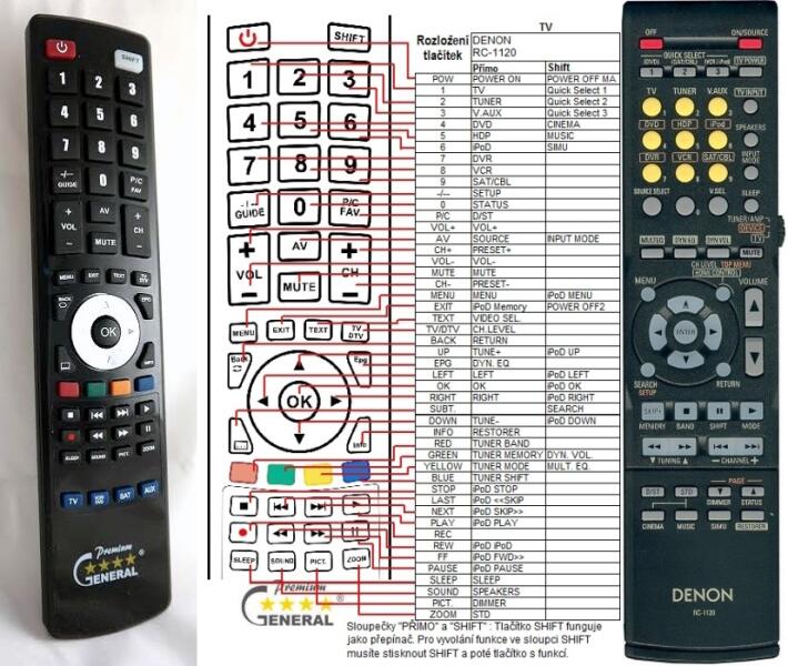 Helyettesítő távirányító DENON RC-1120 (RC1120) - 100%-os 1:1 arányú helyettesítője az eredeti távirányítónak. A távirányító a DENON:AVR-1610, AVR-590. (Előfordulhat, hogy nem minden kompatibilis modell szerepel a listában. Ha nem biztos benne, csak adja meg a készülékmodelljét (online chat-en vagy e-mailben), és mi azonnal ellenőrizzük, if kompatibilis-e az Ön készül
