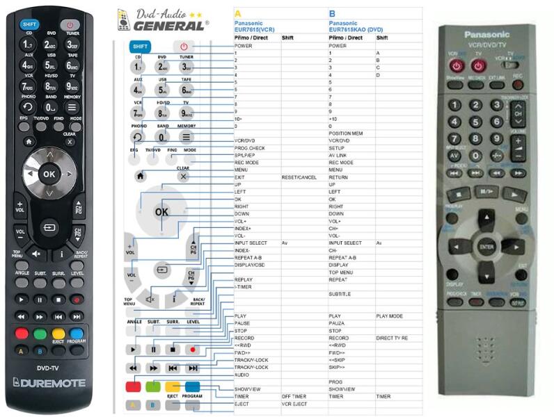 Helyettesítő távirányító PANASONIC EUR7615KAO, EUR7615KA0, EUR7615KSO, EUR7615KS0, EUR7615KTO, EUR7615KT0 - 100%-os 1:1 arányú helyettesítője az eredeti távirányítónak. A távirányító a PANASONIC:NV-VHD1EE-S, NV-VP1, NV-VP30, NV-VP30EP-S, NV-VP31, NV-VP33, V-VHD1EE-S. (Előfordulhat, hogy nem minden kompatibilis modell szerepel a listában. Ha nem biztos benne, csak adja meg a ké