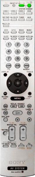 Helyettesítő távirányító SONY RM-AAP011 (RMAAP011) - 100%-os 1:1 arányú helyettesítője az eredeti távirányítónak. A távirányító a SONY:STR-DG700, STRDG700. (Előfordulhat, hogy nem minden kompatibilis modell szerepel a listában. Ha nem biztos benne, csak adja meg a készülékmodelljét (online chat-en vagy e-mailben), és mi azonnal ellenőrizzük, if kompatibilis-e az Ön kés