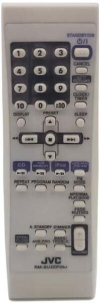 Helyettesítő távirányító JVC RM-SUXEP25J (RMSUXEP25J) - 100%-os 1:1 arányú helyettesítője az eredeti távirányítónak. A távirányító a JVC:UX-EP25, UXEP25. (Előfordulhat, hogy nem minden kompatibilis modell szerepel a listában. Ha nem biztos benne, csak adja meg a készülékmodelljét (online chat-en vagy e-mailben), és mi azonnal ellenőrizzük, if kompatibilis-e az Ön kész