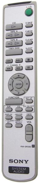 Helyettesítő távirányító SONY RM-SR330 (RMSR330) - 100%-os 1:1 arányú helyettesítője az eredeti távirányítónak. A távirányító a SONY:MHC-S3. (Előfordulhat, hogy nem minden kompatibilis modell szerepel a listában. Ha nem biztos benne, csak adja meg a készülékmodelljét (online chat-en vagy e-mailben), és mi azonnal ellenőrizzük, if kompatibilis-e az Ön készülékével. A