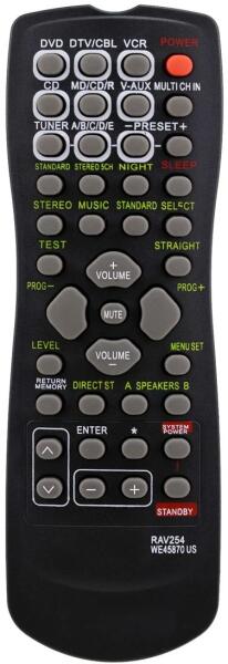 Vadonatúj helyettesítője a távirányítónak YAMAHA RAV253, RAV254. A távirányító a YAMAHA:HTR-5630, HTR-5840, HTR5240, HTR5250, RX-V350, RX-V359, RX-V390, RX-V457, RX-V459, RX-V496, RX-V557, RX-V657, RXV557. (Előfordulhat, hogy nem minden kompatibilis modell szerepel a listában. Ha nem biztos benne, csak adja meg a készülékmodelljét (online chat-en vagy e-mailben), és mi azonnal el