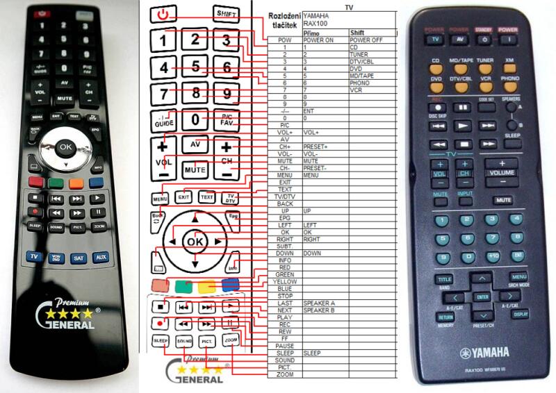 Helyettesítő távirányító YAMAHA RAX100 - 100%-os 1:1 arányú helyettesítője az eredeti távirányítónak. A távirányító a YAMAHA:RX-497, RX-797, RX497, RX797. (Előfordulhat, hogy nem minden kompatibilis modell szerepel a listában. Ha nem biztos benne, csak adja meg a készülékmodelljét (online chat-en vagy e-mailben), és mi azonnal ellenőrizzük, if kompatibilis-e az Ön kész