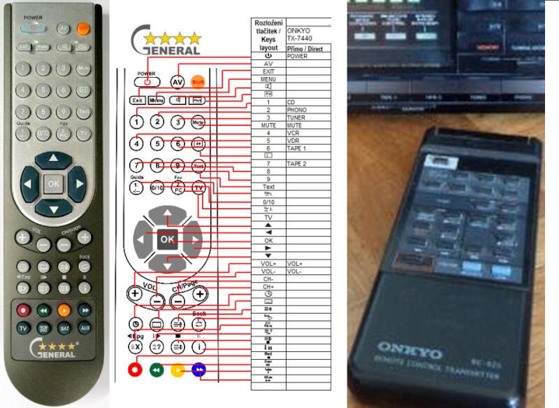 Helyettesítő távirányító ONKYO TX-7440 (TX7440) - 100%-os 1:1 arányú helyettesítője az eredeti távirányítónak. A távirányító a ONKYO:TX-7440, TX7440. (Előfordulhat, hogy nem minden kompatibilis modell szerepel a listában. Ha nem biztos benne, csak adja meg a készülékmodelljét (online chat-en vagy e-mailben), és mi azonnal ellenőrizzük, if kompatibilis-e az Ön készülé