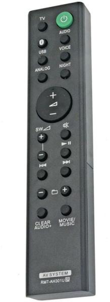 Helyettesítő távirányító SONY RMT-AH301U (RMTAH301U) - 100%-os 1:1 arányú helyettesítője az eredeti távirányítónak. A távirányító a SONY:HT-MT300, HT-MT301. (Előfordulhat, hogy nem minden kompatibilis modell szerepel a listában. Ha nem biztos benne, csak adja meg a készülékmodelljét (online chat-en vagy e-mailben), és mi azonnal ellenőrizzük, if kompatibilis-e az Ön ké