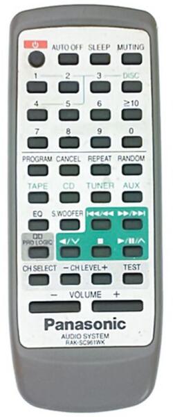 Helyettesítő távirányító PANASONIC RAK-SC961WK (RAKSC961WK) - 100%-os 1:1 arányú helyettesítője az eredeti távirányítónak. A távirányító a PANASONIC:SA-AK88, SAAK88, SC-AK58, SC-AK88, SCAK58, SCAK88. (Előfordulhat, hogy nem minden kompatibilis modell szerepel a listában. Ha nem biztos benne, csak adja meg a készülékmodelljét (online chat-en vagy e-mailben), és mi azonnal e
