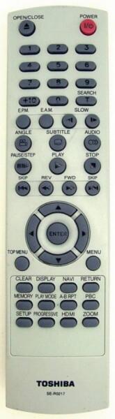 Helyettesítő távirányító TOSHIBA SE-R0217 (SER0217) - 100%-os 1:1 arányú helyettesítője az eredeti távirányítónak. A távirányító a TOSHIBA:HTX810T, SD-370, SD-370EKB, SD-370EKE, SD-480, SD-480EKE, SD-580, SD-580EKE, SD-590, SD-6100, SD-7200, SD-K980, SD-K990, SD370, SD370EKE, SD3990, SD3990SC, SD3990SU, SD4200, SD480, SD4990, SD4990SC, SD4990SU, SD5000, SD5000KC, SD5000KU, SD580,