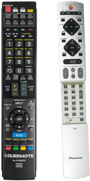 Helyettesítő távirányító PIONEER X-SMC5-K ( XSMC5K) - 100%-os 1:1 arányú helyettesítője az eredeti távirányítónak. A távirányító a PIONEER:X-SMC5-K, XSMC5K. (Előfordulhat, hogy nem minden kompatibilis modell szerepel a listában. Ha nem biztos benne, csak adja meg a készülékmodelljét (online chat-en vagy e-mailben), és mi azonnal ellenőrizzük, if kompatibilis-e az Ön ké