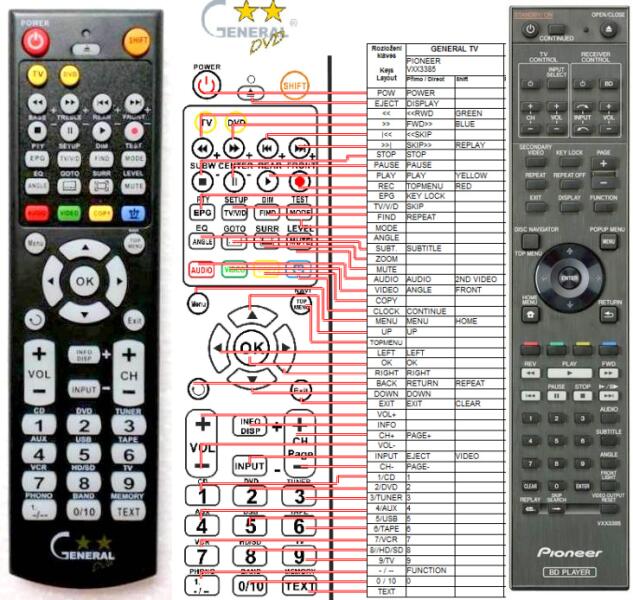 Helyettesítő távirányító PIONEER VXX3385 - 100%-os 1:1 arányú helyettesítője az eredeti távirányítónak. A távirányító a PIONEER:BDP-LX430, BDP-LX53, BDP-LX54, BDP-LX55, BDPLX430, BDPLX53, BDPLX54. (Előfordulhat, hogy nem minden kompatibilis modell szerepel a listában. Ha nem biztos benne, csak adja meg a készülékmodelljét (online chat-en vagy e-mailben), és mi azonnal elle