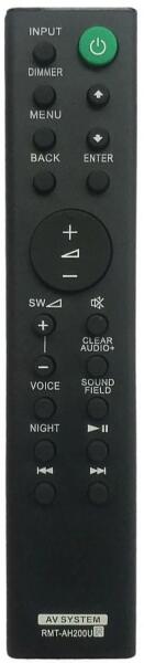 Az eredeti 1:1 arányú duplikátuma távirányító SONY RMT-AH200U (RMTAH200U). A távirányító a SONY:HT-CT390, HT-RT3, SA-CT390, SA-WCT390, SA-WRT3, SS-RT3. (Előfordulhat, hogy nem minden kompatibilis modell szerepel a listában. Ha nem biztos benne, csak adja meg a készülékmodelljét (online chat-en vagy e-mailben), és mi azonnal ellenőrizzük, if kompatibilis-e az Ön készülékéve