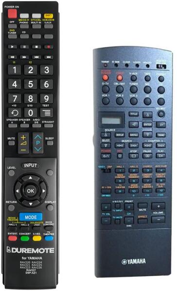 Az eredeti 1:1 arányú duplikátuma távirányító YAMAHA RAV220, RAV221, RAV223, RAV224, RAV225, RAV226, RAV227. A távirányító a YAMAHA:DSP-AX2, DSP-AX2400, DSP-AZ1, DSP-AZ2 , RAV228, RX-V2400, RX-V2400RDS, RX-V3000, RX-V3000GL, RX-V3300, V9408000, WB679600. (Előfordulhat, hogy nem minden kompatibilis modell szerepel a listában. Ha nem biztos benne, csak adja meg a készülékmodelljét (