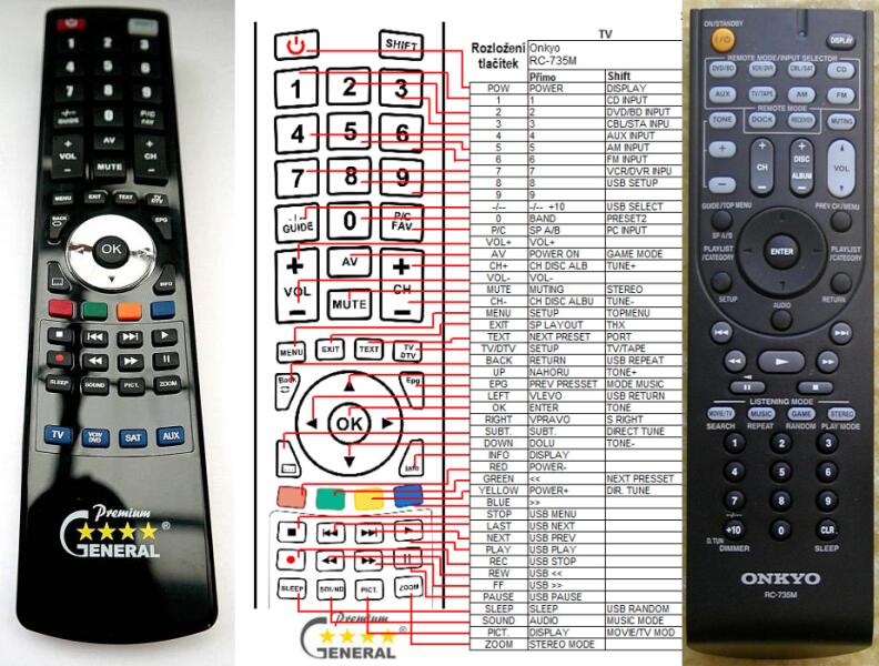 Helyettesítő távirányító ONKYO RC-735M (RC735M) - 100%-os 1:1 arányú helyettesítője az eredeti távirányítónak. A távirányító a ONKYO:HT-R370, HT-S3200, TX-SR307, TX-SR307S. (Előfordulhat, hogy nem minden kompatibilis modell szerepel a listában. Ha nem biztos benne, csak adja meg a készülékmodelljét (online chat-en vagy e-mailben), és mi azonnal ellenőrizzük, if kompatibi