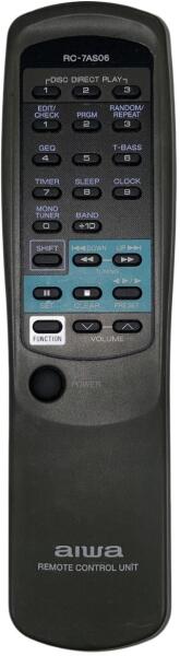 Helyettesítő távirányító AIWA RC-7AS06 (RC7AS06) - 100%-os 1:1 arányú helyettesítője az eredeti távirányítónak. A távirányító a AIWA:CX-NS-707, CX-NS50EZ, CX-NS707, CXNS50EZ, CXNS70. (Előfordulhat, hogy nem minden kompatibilis modell szerepel a listában. Ha nem biztos benne, csak adja meg a készülékmodelljét (online chat-en vagy e-mailben), és mi azonnal ellenőrizzük, if