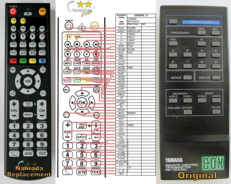 Helyettesítő távirányító YAMAHA RS-CDX510 (RSCDX510) - 100%-os 1:1 arányú helyettesítője az eredeti távirányítónak. A távirányító a YAMAHA:CDX-510. (Előfordulhat, hogy nem minden kompatibilis modell szerepel a listában. Ha nem biztos benne, csak adja meg a készülékmodelljét (online chat-en vagy e-mailben), és mi azonnal ellenőrizzük, if kompatibilis-e az Ön készülék