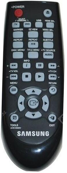Helyettesítő távirányító SAMSUNG AK59-00084V (AK5900084V) - 100%-os 1:1 arányú helyettesítője az eredeti távirányítónak. A távirányító a SAMSUNG:DVD-C550, DVD-D530. (Előfordulhat, hogy nem minden kompatibilis modell szerepel a listában. Ha nem biztos benne, csak adja meg a készülékmodelljét (online chat-en vagy e-mailben), és mi azonnal ellenőrizzük, if kompatibilis-e az