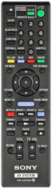 Helyettesítő távirányító SONY RM-ADP089 (RMADP089) - 100%-os 1:1 arányú helyettesítője az eredeti távirányítónak. A távirányító a SONY:BDV-E2100, BDV-E3100, BDV-E3100/C, BDV-E4100, BDV-E6100, BDVE2100, BDVE3100, BDVE3100C, BDVE4100, BDVE6100. (Előfordulhat, hogy nem minden kompatibilis modell szerepel a listában. Ha nem biztos benne, csak adja meg a készülékmodelljét (onlin
