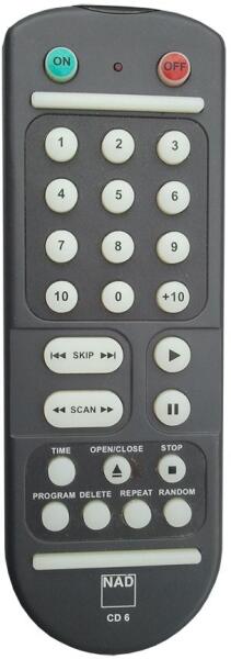 Helyettesítő távirányító NAD CD6 - 100%-os 1:1 arányú helyettesítője az eredeti távirányítónak. A távirányító a NAD:C521BEE, C525BEE, C542, S500 CD, S500CD. (Előfordulhat, hogy nem minden kompatibilis modell szerepel a listában. Ha nem biztos benne, csak adja meg a készülékmodelljét (online chat-en vagy e-mailben), és mi azonnal ellenőrizzük, if kompatibilis-e az Ön ké