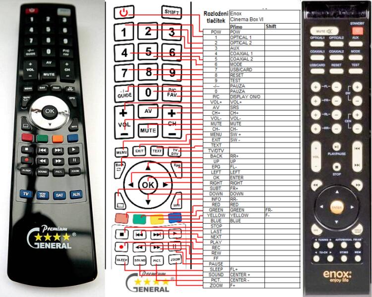 Helyettesítő távirányító ENOX CINEMA BOX VI - 100%-os 1:1 arányú helyettesítője az eredeti távirányítónak. A távirányító a ENOX:CINEMA BOX VI. (Előfordulhat, hogy nem minden kompatibilis modell szerepel a listában. Ha nem biztos benne, csak adja meg a készülékmodelljét (online chat-en vagy e-mailben), és mi azonnal ellenőrizzük, if kompatibilis-e az Ön készülékével.