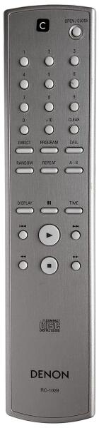 Helyettesítő távirányító DENON RC-1028 (RC1028) - 100%-os 1:1 arányú helyettesítője az eredeti távirányítónak. A távirányító a DENON:DCD-500AE, DCD500AE. (Előfordulhat, hogy nem minden kompatibilis modell szerepel a listában. Ha nem biztos benne, csak adja meg a készülékmodelljét (online chat-en vagy e-mailben), és mi azonnal ellenőrizzük, if kompatibilis-e az Ön kész