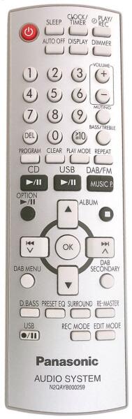 Az eredeti 1:1 arányú duplikátuma távirányító PANASONIC N2QAYB000259. A távirányító a PANASONIC:SA-PMX3, SA-PMX4. (Előfordulhat, hogy nem minden kompatibilis modell szerepel a listában. Ha nem biztos benne, csak adja meg a készülékmodelljét (online chat-en vagy e-mailben), és mi azonnal ellenőrizzük, if kompatibilis-e az Ön készülékével. Az ellenőrzött kompatibilitást m