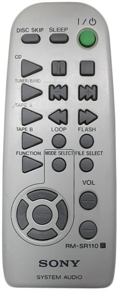 Helyettesítő távirányító SONY RM-SR110 (RMSR110) - 100%-os 1:1 arányú helyettesítője az eredeti távirányítónak. A távirányító a SONY:MHC-ZX1, MHC-ZX10, MHCZX1, MHCZX10. (Előfordulhat, hogy nem minden kompatibilis modell szerepel a listában. Ha nem biztos benne, csak adja meg a készülékmodelljét (online chat-en vagy e-mailben), és mi azonnal ellenőrizzük, if kompatibilis-