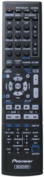 Az eredeti 1:1 arányú duplikátuma távirányító PIONEER AXD7534, VSX-321, VSX-323, VSX-329, VSX-423, VSX-521, VSX-522 (AXD7534, VSX321, VSX323, VSX329, VSX423, VSX521, VSX522). A távirányító a PIONEER:VSX-321, VSX-323-K, VSX-329, VSX-423, VSX-521, VSX-521-K, VSX-522-K, VSX-LX50, VSX-S510, VSX-S520, VSX1123, VSX329. (Előfordulhat, hogy nem minden kompatibilis modell szerepel a listában.