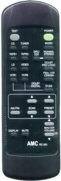 Helyettesítő távirányító AMC RC-001 (RC001) - 100%-os 1:1 arányú helyettesítője az eredeti távirányítónak. A távirányító a AMC:AV-81HT, AV81HT. (Előfordulhat, hogy nem minden kompatibilis modell szerepel a listában. Ha nem biztos benne, csak adja meg a készülékmodelljét (online chat-en vagy e-mailben), és mi azonnal ellenőrizzük, if kompatibilis-e az Ön készülékével
