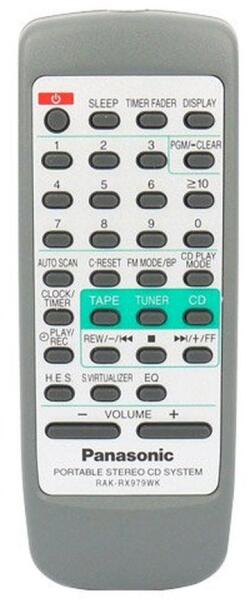 Az eredeti 1:1 arányú duplikátuma távirányító PANASONIC RAK-RX979WK (RAKRX979WK). A távirányító a PANASONIC:RX-EX1. (Előfordulhat, hogy nem minden kompatibilis modell szerepel a listában. Ha nem biztos benne, csak adja meg a készülékmodelljét (online chat-en vagy e-mailben), és mi azonnal ellenőrizzük, if kompatibilis-e az Ön készülékével. Az ellenőrzött kompatibilitást