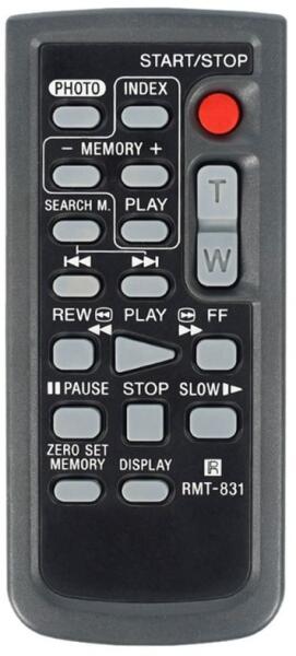 Helyettesítő távirányító SONY RMT-831 (RMT831) - 100%-os 1:1 arányú helyettesítője az eredeti távirányítónak. A távirányító a SONY:DCR-HC1000, DCR-HC30, DCR-HC32, DCR-HC33, DCR-HC33E, DCR-HC36, DCR-HC36M, DCR-HC40, DCR-HC42, DCR-HC46, DCR-HC48 / HC48E, DCR-HC62, DCR-HC65, DCR-HC85, DCR-HC96, DCR-PC109, DCR-PC330, DCR-PC350, HDR-FX1000, HDR-FX7, HDR-HC1, HDR-HC3, HDR-HC5 / HC5E, H