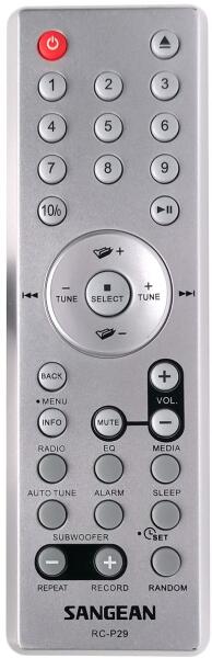 Helyettesítő távirányító SANGEAN RC-P29 (RCP29) - 100%-os 1:1 arányú helyettesítője az eredeti távirányítónak. A távirányító a SANGEAN:DDR-66BT, DDR66BT. (Előfordulhat, hogy nem minden kompatibilis modell szerepel a listában. Ha nem biztos benne, csak adja meg a készülékmodelljét (online chat-en vagy e-mailben), és mi azonnal ellenőrizzük, if kompatibilis-e az Ön kész