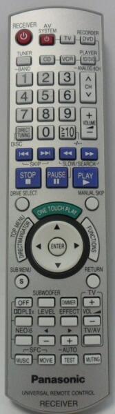 Az eredeti 1:1 arányú duplikátuma távirányító PANASONIC EUR7662YS0. A távirányító a PANASONIC:EUR7662YN0, SA-GR700EG, SA-XR59EG-K, SA-XR59EG-S, SA-XR59G, SA-XR59GN-K, SA-XR700EG-S, SA-XR700GN-K, SA-XR700GN-S, SA-XR9EG-S, SAXR59EG-K, SAXR59EG-S, SAXR59G, SAXR700EG-S, SAXR700GN-K, SAXR700GN-S, SG-PAVCJM, SGPAVCJM. (Előfordulhat, hogy nem minden kompatibilis modell szerepel a listában. H