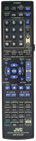 Az eredeti 1:1 arányú duplikátuma távirányító JVC RM-STHD5R (RMSTHD5R). A távirányító a JVC:TH-D4, TH-D5, TH-D50, TH-D50U, TH-D51, THD4, THD5, THD50, THD50U, THD51. (Előfordulhat, hogy nem minden kompatibilis modell szerepel a listában. Ha nem biztos benne, csak adja meg a készülékmodelljét (online chat-en vagy e-mailben), és mi azonnal ellenőrizzük, if kompatibilis-e az Ön k