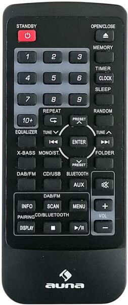 Helyettesítő távirányító AUNA Harvard, 10031949, 10031950 - 100%-os 1:1 arányú helyettesítője az eredeti távirányítónak. A távirányító a AUNA:10031949, 10031950, HARVARD. (Előfordulhat, hogy nem minden kompatibilis modell szerepel a listában. Ha nem biztos benne, csak adja meg a készülékmodelljét (online chat-en vagy e-mailben), és mi azonnal ellenőrizzük, if kompatibili